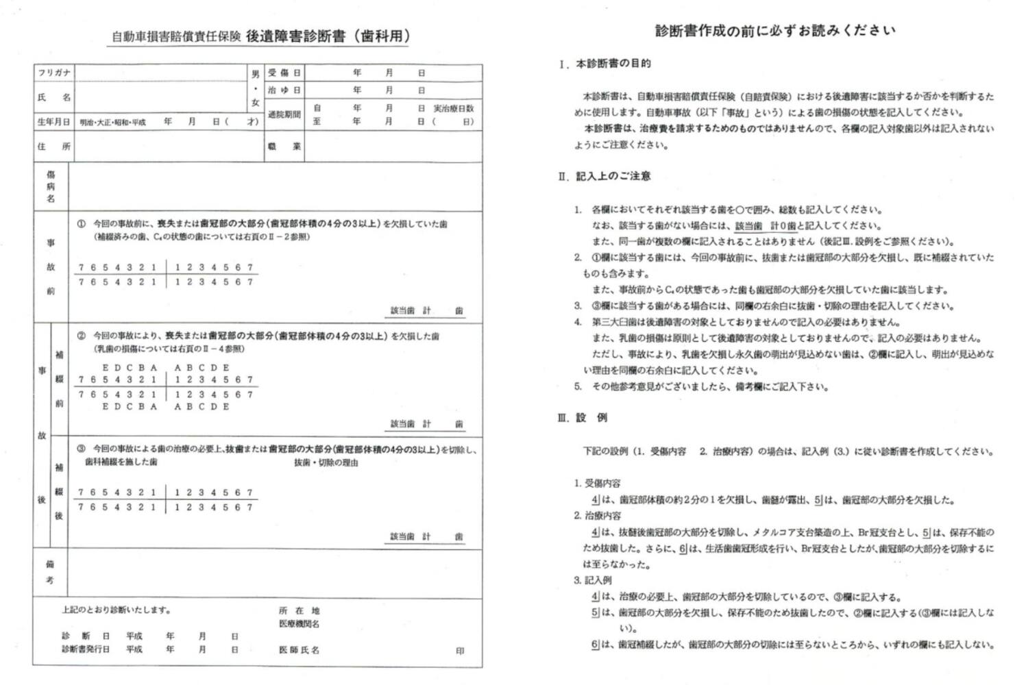 後遺障害診断書(歯科用)では、